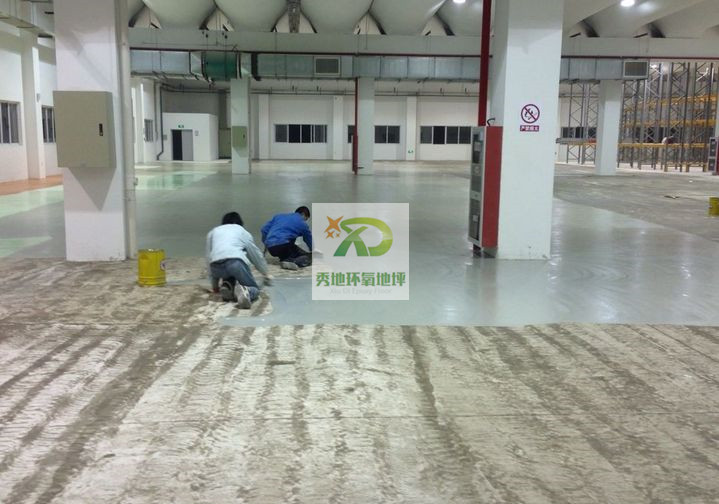 1、在潔凈的地面上,將環氧樹脂和石英粉按正確的配比攪拌均勻后,采用批刀均勻鏝刮在地面上,以增加中涂與面層之間的結合,并進一步調整地面的平整度;