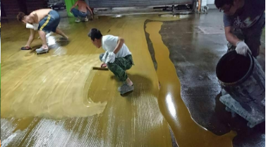 4、環氧膩子:將環氧雙組份加入適量膩子粉,用鏝刀將其均勻涂布一至兩道,增加地面的平整度;