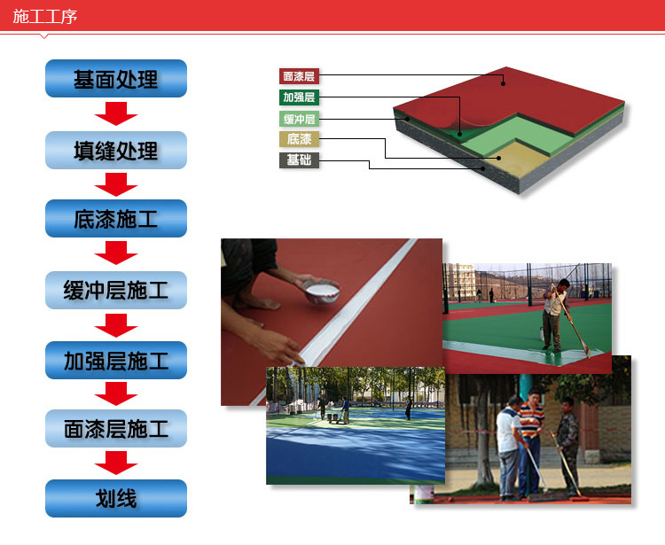 硅pu籃球場地坪施工流程: